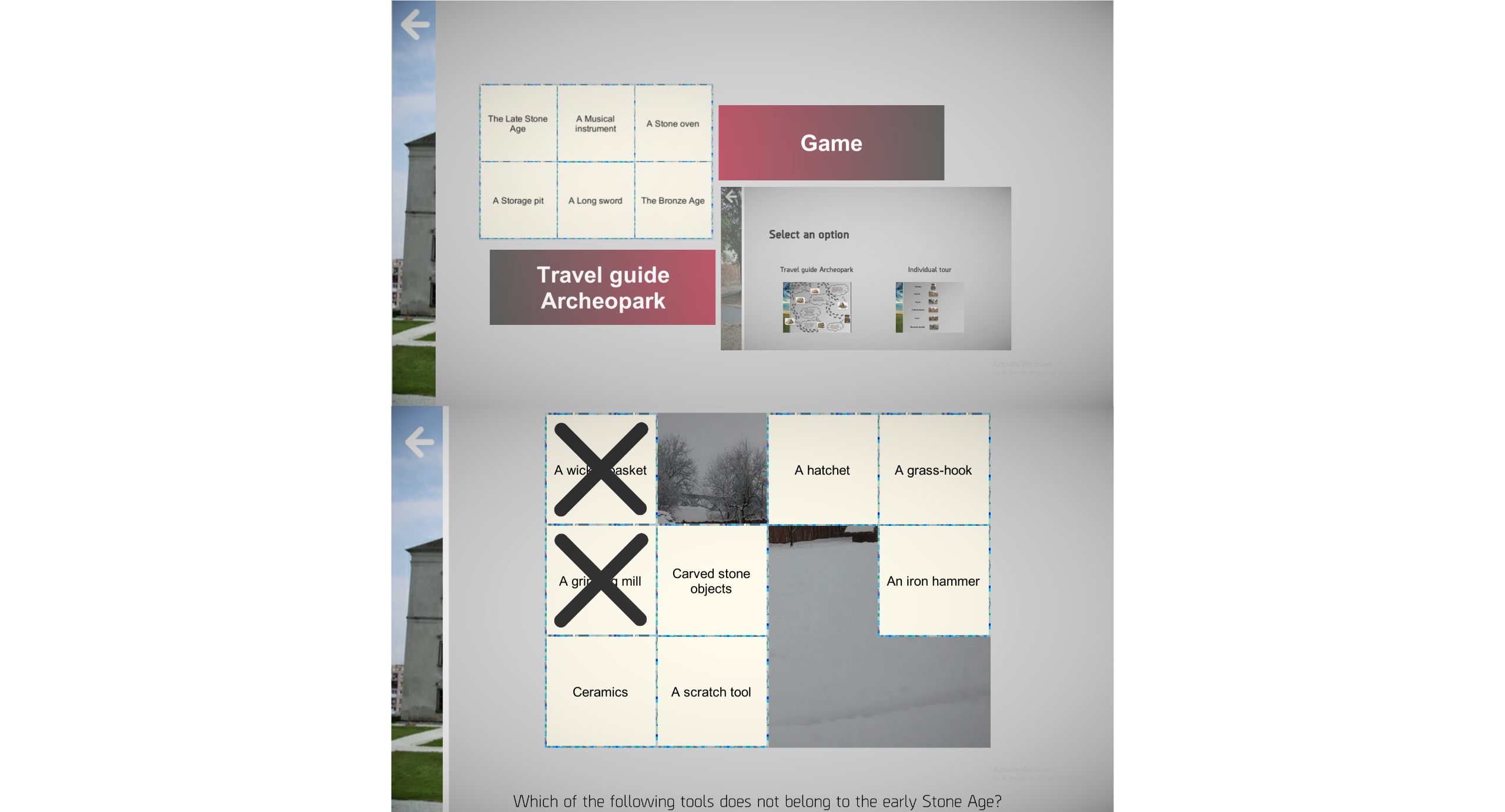 It features quiz, where player can reveal secret image by answering questions about the ancient age he learned in this app.